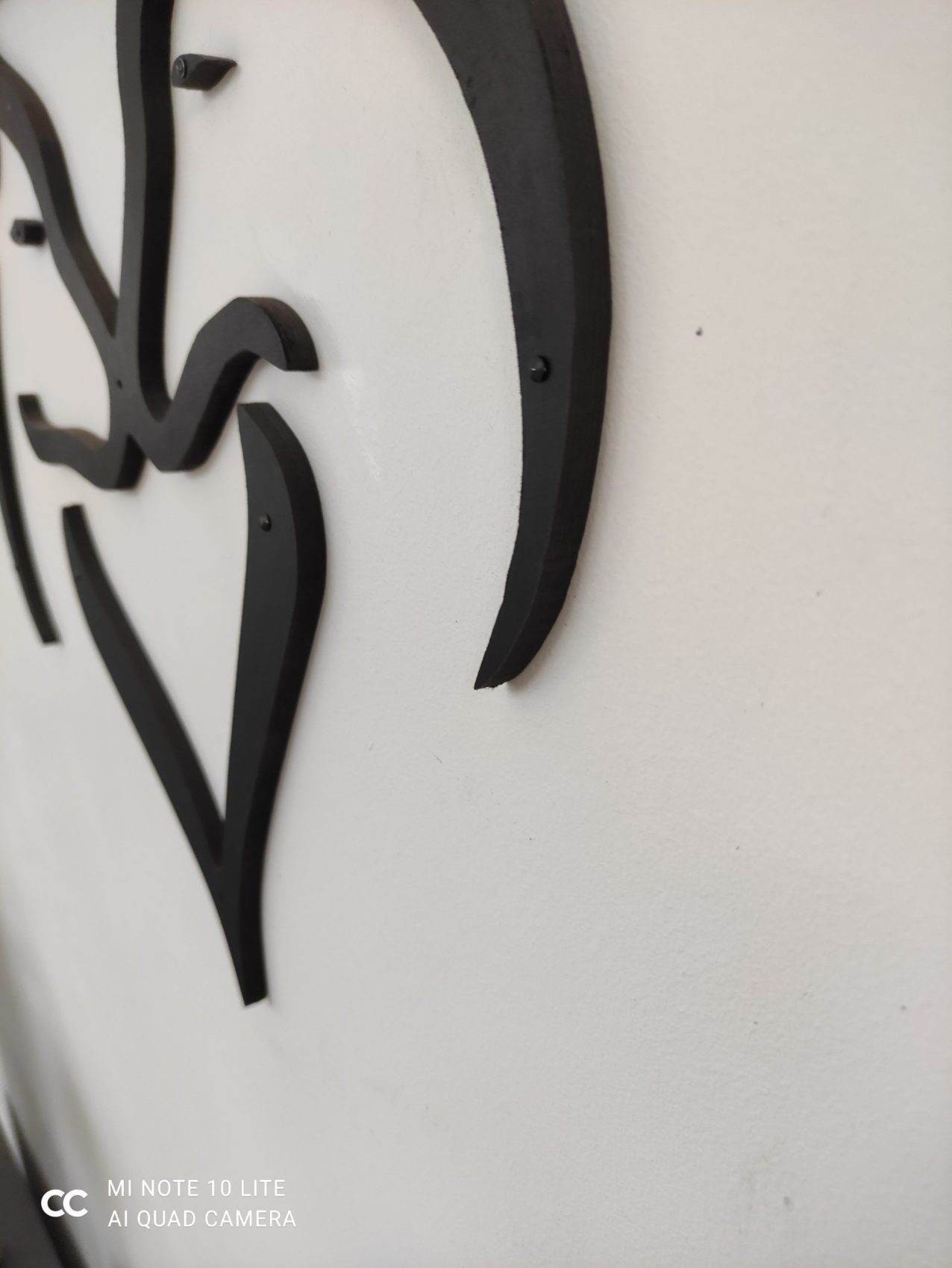Fixation murale simple par petites pointes fournies à tête ronde et noire.