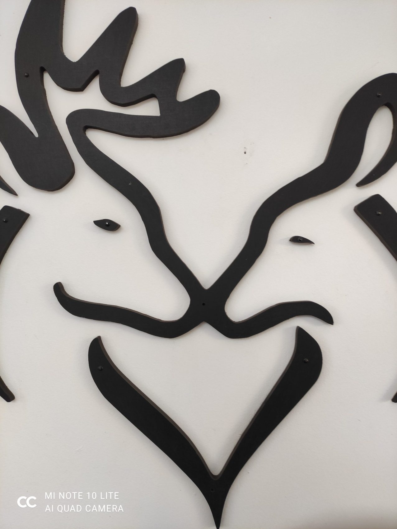 Cerf et biche décoratif moderne origami en MDF avec une face noire anthracite teintée dans la masse et une face peinte en noir brossé.